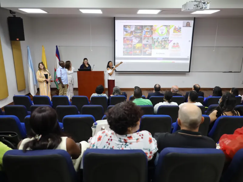 El pasado 27 de mayo se realizó la socialización de la implementación de las estrategias de promoción de la alimentación saludable por parte de profesores de diferentes instituciones educativas del Valle del Cauca, como parte del proyecto NutriRSE de Saberes, desarrollado en alianza con Harinera del Valle por parte de profesoras del Departamento de Ciencias Sociales vinculadas a los programas de Maestría en Psicología de la Salud y Maestría en Educación.
