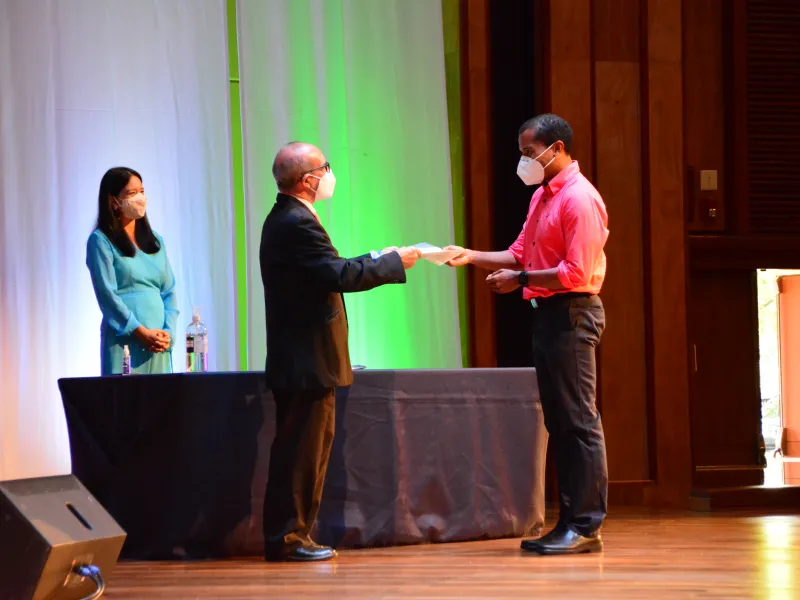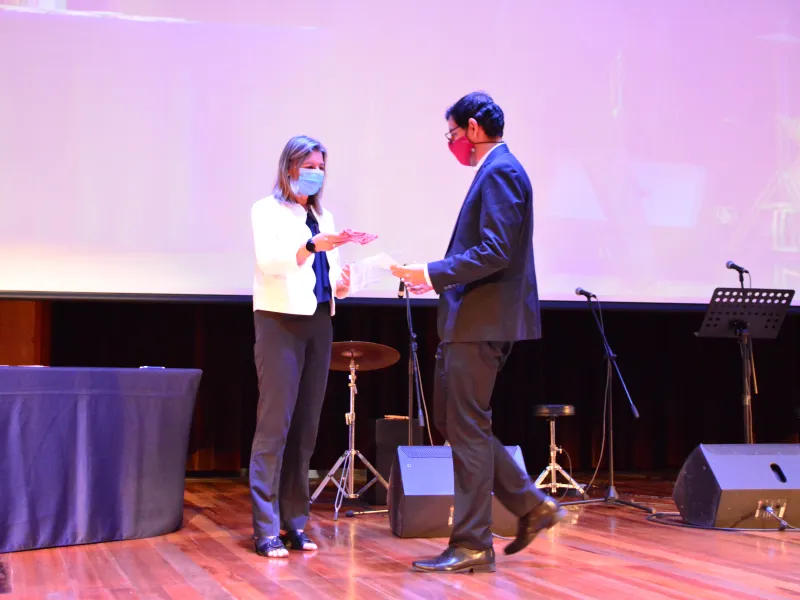 Por su parte, el decano de la facultad de Ingeniería y Ciencias, Camilo Rocha, compartió su testimonio en el que dedicó unas palabras al profesor Hugo Fernando Prado, quien falleció días atrás y que era respetado y apreciado por sus estudiantes y colegas. "Que la memoria de Hugo se encuentre hoy en el corazón de familiares, estudiantes, amigos y profesores, pues su aporte a la sociedad es motivo para celebrar", expresó el decano.